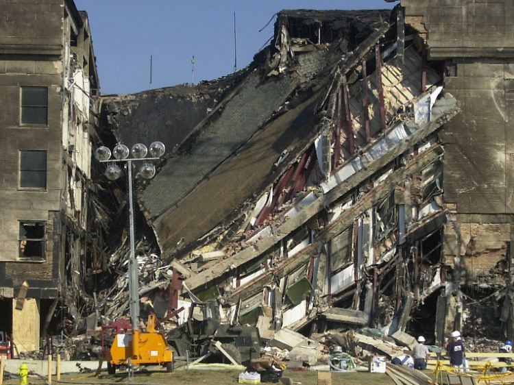 Einige Verschwörungstheorien besagen, dass das Pentagon nicht von einem Passagierflugzeug, sondern von einer Rakete getroffen wurde. Wenn man einmal davon absieht, dass im Pentagon nicht nur die Black Box des Flugzeugs, sondern auch die DNA von Passagieren gefunden wurde, so gibt es zwei Gründe für diese Annahme: Erstens gibt es keine Bilder vom Einschlag des Flugzeugs. Zweitens legt der entstandene Schaden diese Vermutung tatsächlich nahe - das Loch im Pentagon ist kleiner als eine Boeing 757 groß ist. Die Annahme, ein Flugzeug hinterlasse in einem Gebäude ein Loch in der Größe der eigenen Umrisse sei allerdings falsch, sagt Mete Sozen, ein Professor für Bauingenieurswesen. Ein Flügel des Flugzeugs sei beim Aufprall abgerissen worden. Der Rest des Flugzeugs sei in einem Zustand in das Gebäude geglitten, der "näher an einer Flüssigkeit" gewesen sei als an einem festen Körper.