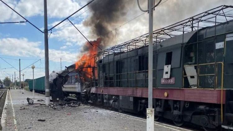 Bei einem russischen Angriff auf einen Bahnhof in der nordukrainischen Region Sumy ist nach Angaben der örtlichen Behörden ein Personenzug getroffen worden. Dabei habe es Opfer unter den Fahrgästen gegeben, teilt Regionalgouverneur Oleh Hryhorow mit. Der russische Angriff habe einem Bahnhof gegolten, wobei ein Zug getroffen worden sei, der nach Kiew hätte fahren sollen. Angaben zur Zahl der Opfer wurden nicht gemacht. Der Gouverneur veröffentlicht ein Bild eines brennenden Waggons und erklärt, Rettungskräfte seien im Einsatz. Russland hat seine Luftangriffe auf die Eisenbahn-Infrastruktur der Ukraine in den vergangenen Monaten verstärkt. Eine russische Stellungnahme liegt zunächst nicht vor.
