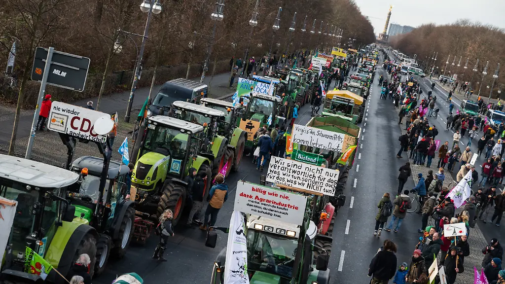 Die Grüne Woche in Berlin lockt nicht nur Messebesucher, sondern auch Demonstranten an. Tausende Menschen gehen auf die Straße - darunter Bauern und Tierschützer. Sie kritisieren unter anderem die EU, deren Agrarpolitik heimische Produzenten durch billiges Fleisch bedrohe.