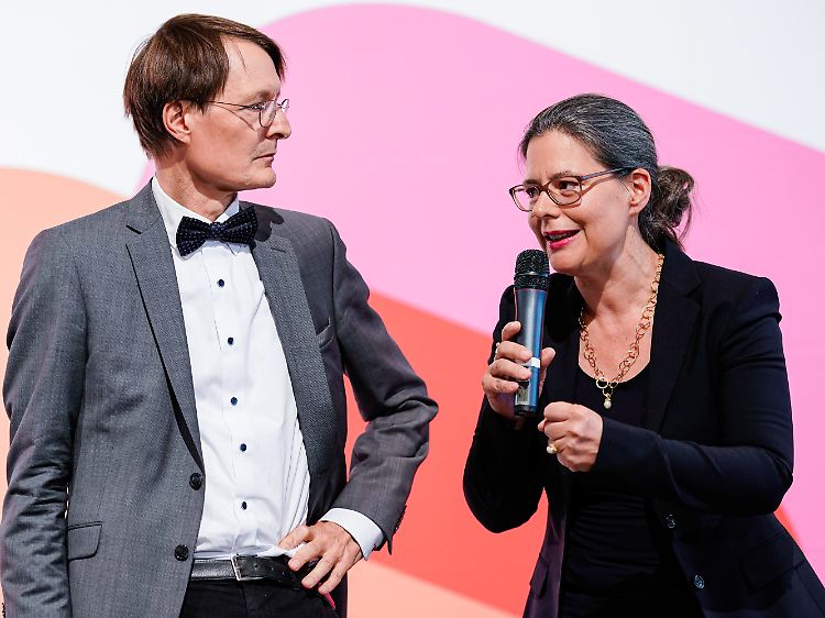 Der Rest des Abends hat also plötzlich nur noch 15 Hauptdarsteller, mehr Redezeit gibt es trotzdem nicht. Wer Herkunft aus der Arbeiterklasse vorweisen kann, verwendet allein darauf zwei Minuten. Lauterbach hat einen "Bildungsaufstieg" geschafft, Niedersachsens Innenminister Boris Pistorius hat das Abitur nur dank des "Schüler-Bafögs von Willy Brandt", die ehemalige NRW-Familienministerin Christine Kampmann war "Arbeiterkind" und hat dann auch noch auf dem Sozialamt gearbeitet. "Verteilungsgerechtigkeit" und "gleiche Chancen" sind ein großes Thema an diesem Abend, besonders punkten können die Bewerber immer dann, wenn sie konkret werden. Lauterbach sagt: "Arme sterben zehn bis zwölf Jahre früher." Das sitzt.