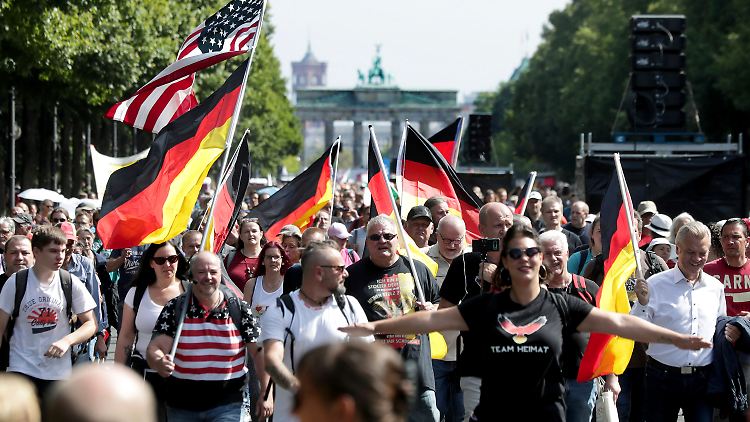 Bereits am Vormittag hatten sich vor dem Brandenburger Tor rund 1000 Menschen versammelt. Die Polizei sperrte Zugänge von der Friedrichstraße und Unter den Linden mit Gittern ab. Demonstrierende schrien "Tor auf" und skandierten "Wir sind das Volk". Eine riesige Deutschlandflagge war auf dem Boden vor dem Brandenburger Tor ausgelegt. Zu sehen waren auch Fahnen im Stil der bei Rechtsextremisten beliebten Reichskriegsflagge.