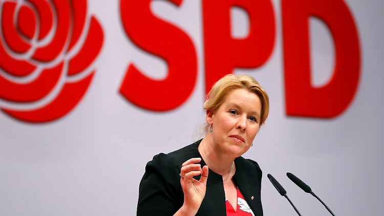 Familienministerin Franziska Giffey ruft die Delegierten in der Debatte über den Leitantrag auf, die Koalition mit der Union nicht aufzukündigen. "Wir haben viel geschafft", sagt Giffey. Der Parteitag solle ein Signal senden, "dass die SPD für eine verlässliche Regierung steht". Sie könne sich nicht damit abfinden, dass die SPD seit anderthalb Jahren immer wieder die Endzeitdebatte führe. Niemand wolle eine Partei wählen, die nicht regieren wolle. "Ich spreche mich ganz klar dafür aus, dass wir weitermachen."