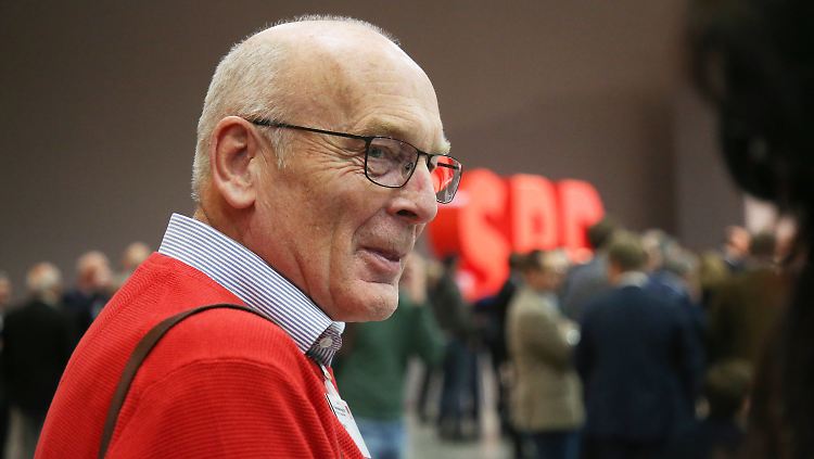 Nun steht Norbert Walter-Borjans auf dem Podium - er beginnt seine Rede mit dem stolz- amüsierten Verweis darauf, dass FDP-Chef Christian Lindner nach dem Mitgliederentschied über den SPD-Vorsitz "baff" gewesen sei. Dann spricht er sich für den Frieden aus, ruft die Leistungen Willy Brandts und Helmut Schmidts in Erinnerung. Sollte es nicht um die Zukunft gehen? Langsam kommt er dann über die Ostpolitik Brandts zu Trump und der Forderung, Deutschland müsse mehr für Verteidigung ausgeben. Er distanziert sich vom Zwei-Prozent-Ziel für die Verteidigungsausgaben. Er fühle sich mehr der Entwicklungszusammenarbeit verpflichtet. Dafür bekommt er Applaus.