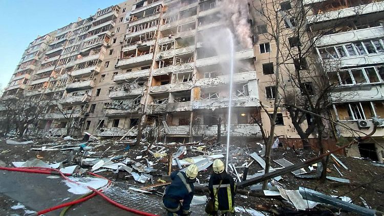 +++ 07:03 Nach Explosionen in Kiew: Foto zeigt zerstörten Häuserblock +++