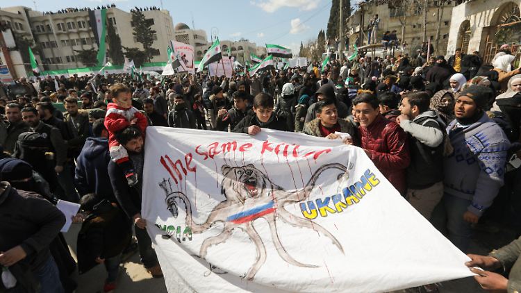 Anti-russische Demonstration im syrischen Idlib. Die Stadt wird von der Opposition kontrolliert. Moskau stützt hingegen Machthaber Baschar al-Assad.