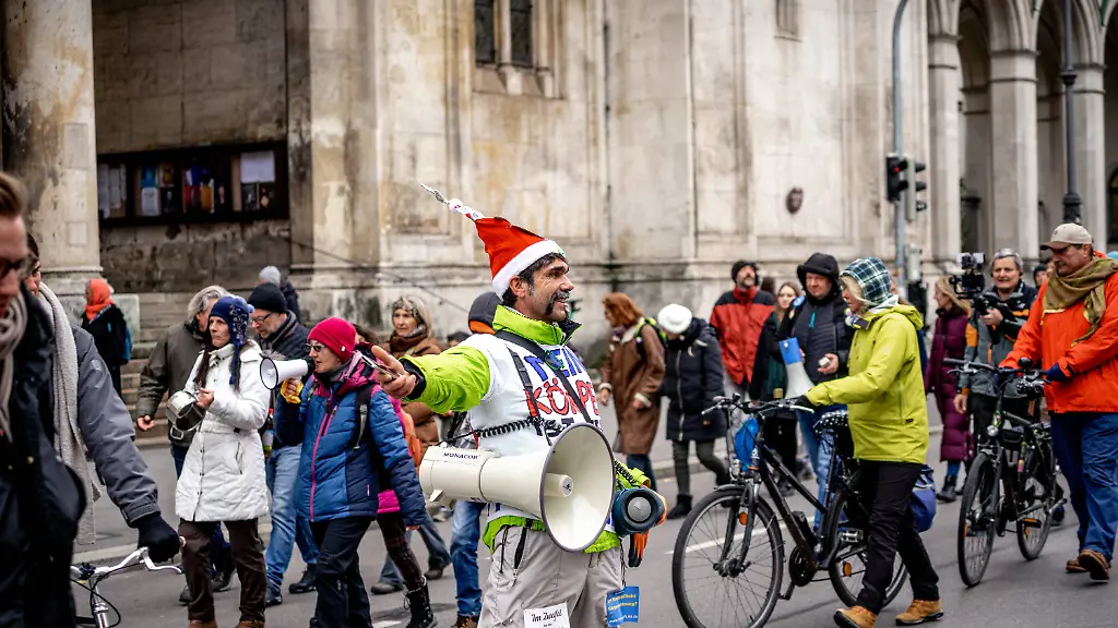 Trotz eines Verbots marschieren einige Tausend Gegner der Corona Maßnahmen durch die Münchener Innenstadt. Etwa 500 Polizeibeamte sind im Einsatz und versuchen die Menschenansammlungen zu unterbinden. Auch Gegendemonstranten sind vor Ort.
