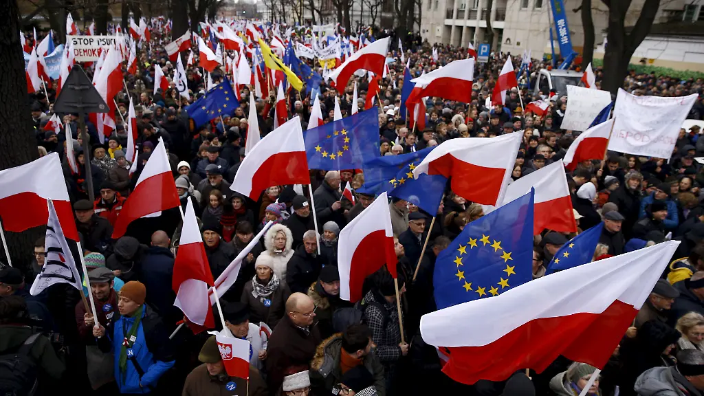 Die Demonstranten halten es für nicht legitim, dass die seit November regierende PiS mit ihrem Parteichef Jaroslaw Kaczynski ihre Macht nutzt, um etwa ihr genehme Verfassungsrichter einzusetzen. Der Warschauer Protestzug, der unter dem Schlagwort "Freiheit, Gleichheit, Demokratie" stattfand, begann am Sitz des Verfassungsgerichts, um von dort zum Parlament und zum Präsidialamt weiterzuziehen. Die Demonstranten schwenkten polnische Flaggen und Fahnen der Europäischen Union.