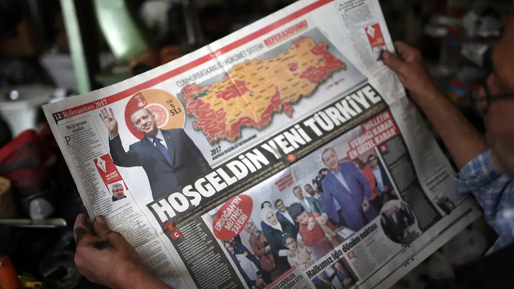 Erst Stunden nach Schließung der Wahllokale trat Erdogan in Istanbul vor die Kameras und sprach von einer "historischen Entscheidung", mit der das Volk der Verfassungsänderung zugestimmt habe. Nach dem vorläufigen Resultat habe das "Ja"-Lager gewonnen, bestätigte der Vorsitzende der Wahlkommission, Sadi Güven, im Fernsehen.
