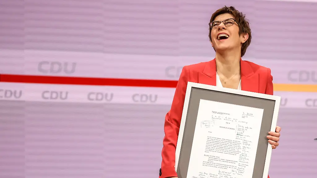 In ihrer letzten Rede als Vorsitzende hat Annegret Kramp-Karrenbauer die CDU zur Einigkeit aufgerufen. In diesem Jahr gelte es, mit der Corona-Krise und der Bundestagswahl wichtige Herausforderungen zu bewältigen. "Unterstützen wir geschlossen unseren neuen Vorsitzenden der CDU. Stehen wir zusammen ein für eine moderne und offene CDU, für eine Union, die zusammenhält, für eine CDU, die so eng mit den Menschen vor Ort verbunden ist, wie keine andere Partei", sagte Kramp-Karrenbauer beim ersten digitalen Parteitag der CDU. "Arbeiten wir gemeinsam für unser Land, nicht wegen gestern, nicht wegen heute, sondern wegen morgen."