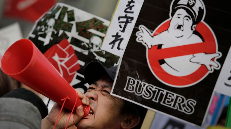 Aus China kam prompt Kritik. "Japan stellt aus innenpolitischen Gründen China als Gefahr dar. Dem widersprechen wir", sagte ein Sprecher des Pekinger Außenministeriums. In Japan versammelten sich am Dienstag nach Angaben der Organisatoren rund 2000 Menschen vor dem Amtssitz des Regierungschefs, um gegen Abes Vorgehen zu protestieren. "Zerstöre nicht Artikel 9", skandierten die Demonstranten. Der Artikel der Nachkriegsverfassung untersagt Japan das Recht auf Kriege zur Beilegung internationaler Konflikte.