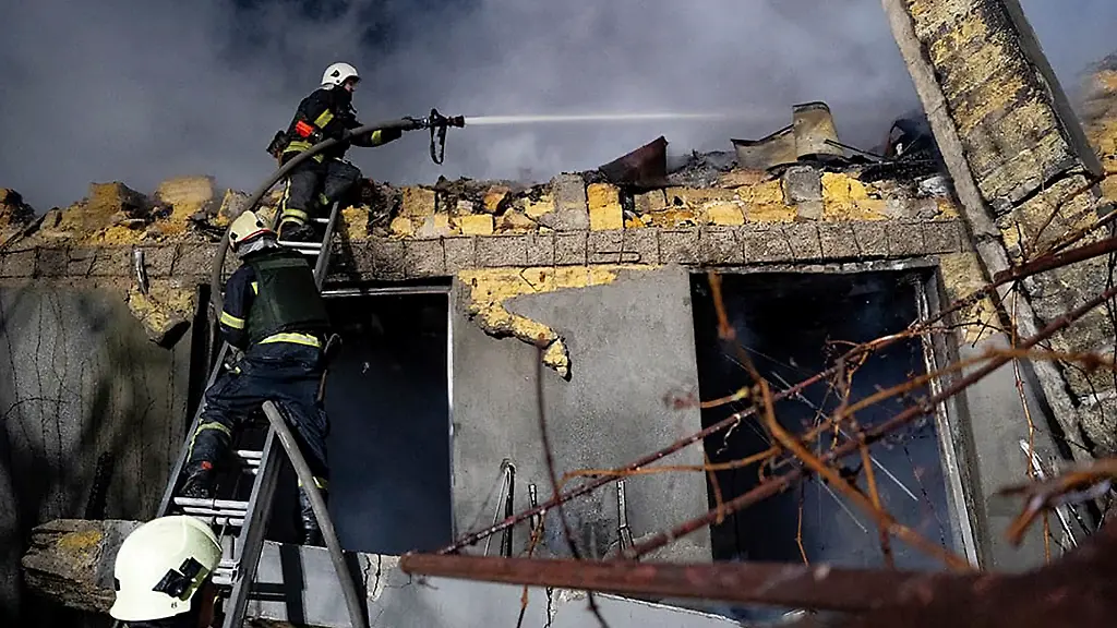 Mit Drohnenangriffen auf die ukrainische Hafenstadt Odessa hat Russland vor dem zweiten Jahrestag seines Angriffskriegs mindestens drei Menschen getötet. Die Opfer starben nach Angaben der Behörden in den Trümmern eines völlig zerstörten Industriegebäudes, das in der Nacht auch ausbrannte. "Dieses Mal wurden in Richtung Odessa neun Drohnen eingesetzt", sagte die Sprecherin der Südgruppierung der ukrainischen Armee, Natalja Humenjuk, vor Journalisten. Sie bezeichnete den nächtlichen Angriff als weiteren Test der Flugabwehr durch das russische Militär.