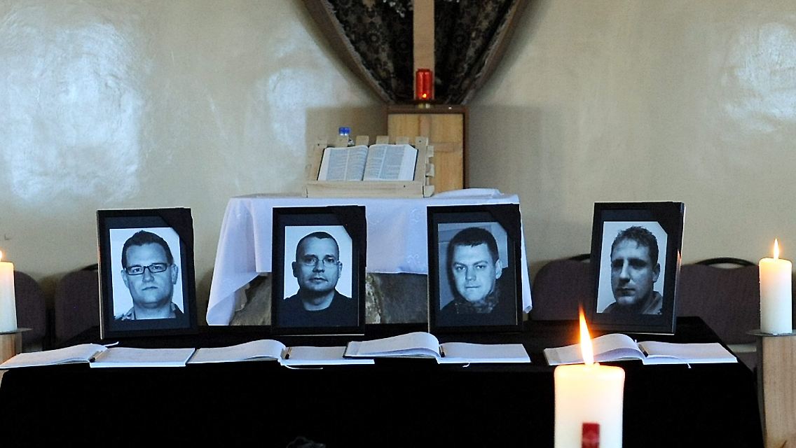 Am Donnerstag waren in der nordafghanischen Provinz Baghlan insgesamt vier Bundeswehrsoldaten durch die Explosion einer Sprengfalle sowie durch Raketenbeschuss getötet worden. Die Särge sollten nach der Trauerfeier zum Stützpunkt Termes in Usbekistan geflogen werden. Wann von dort aus der Rücktransport nach Deutschland starten kann, ist wegen des geltenden Flugverbots in Europa weiter unklar.