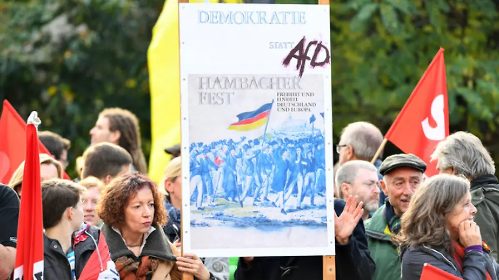 Viele der Demonstranten sind dagegen aufgebracht, weil die "AfD das älteste Symbol der deutschen Demokratie für ihre Zwecke instrumentalisiert", wie eine Demonstrantin sagt. Auch Rüdiger Stein vom Bündnis gegen Rechts hält es für eine Provokation, dass die AfD auf dem Hambacher Schloss tagt. "Die AfD ist keine Partei wie jede andere. Sie schürt Ängste und fördert Ausgrenzung. In ihren Reihen gibt es zwar moderate Mitglieder. Aber eben auch Leute wie Höcke", sagte er. Björn Höcke ist Thüringens AfD-Landes- und Fraktionschef.