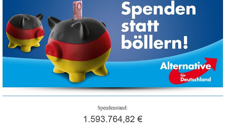 Der panisch herbeigeredete Bankrott scheint abgewendet: Innerhalb von nur drei Wochen hat die AfD Spenden in Höhe von 1,6 Millionen Euro kassiert. Eine Klatsche für linke Aktivisten - denn sie wollten die Rechtspopulisten mit Mini-Beträgen in die Pleite spenden.