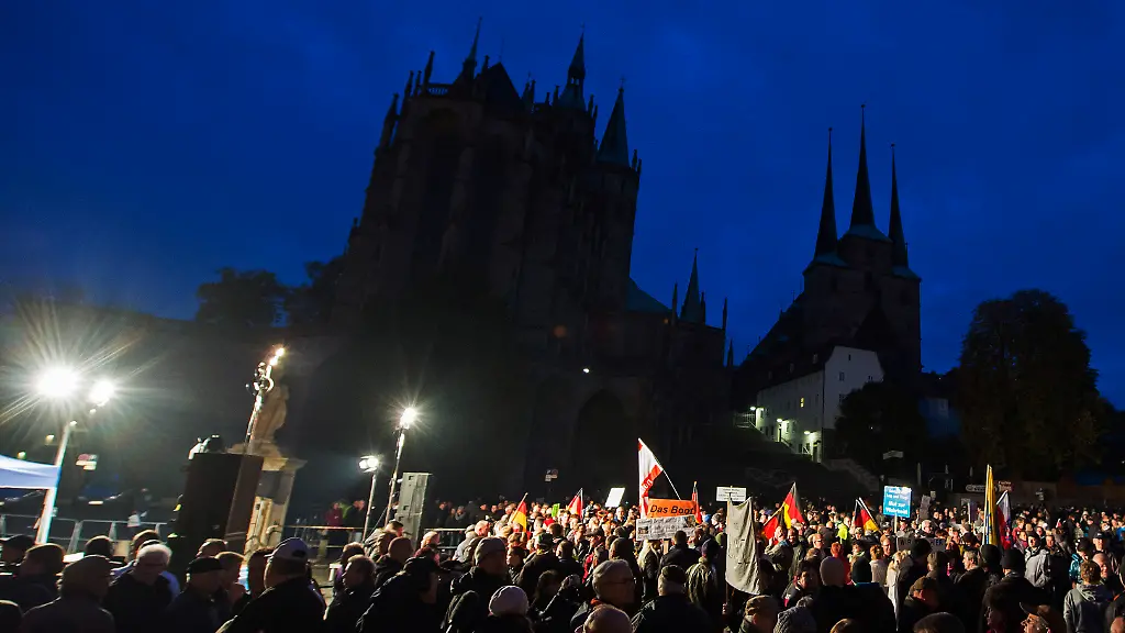 Der Thüringer AfD-Fraktionschef Björn Höcke hatte schon bei früheren Kundgebungen mit Äußerungen wie Erfurt sei "schön deutsch" provoziert. Zuletzt sorgte sein Auftritt bei Günther Jauch für Aufregung. Justizminister Heiko Maas nannte ihn in der Sendung einen "rhetorischen Brandstifter".