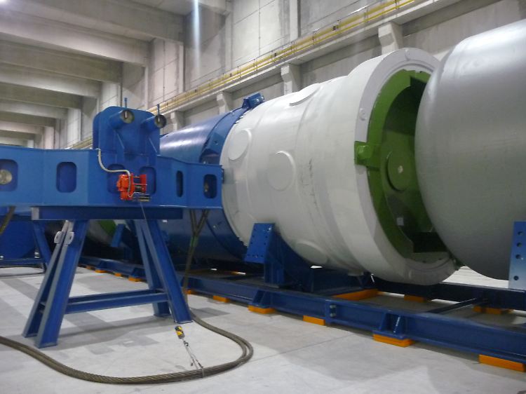 Besonders staubig ist es nicht, doch es riecht nach Werkstatt, nach Öl, nach Metall. Die Arbeiter tragen Helme, zum Teil Stöpsel in den Ohren. Eine riesige Bandsäge, die sich langsam durch einen alten Dampferzeuger arbeitet, füllt die Halle mit Dauerkrach. Ein Relikt wird hier zerlegt, ein Fossil der 1960er und 70er Jahre, hier, in der ZAW, der Zentralen Aktiven Werkstatt des einstigen Kernkraftwerks Lubmin an der vorpommerschen Ostseeküste. "Aktiv" meint dabei nicht die Arbeiter, sondern die Bauteile, die sie zerkleinern und dekontaminieren.