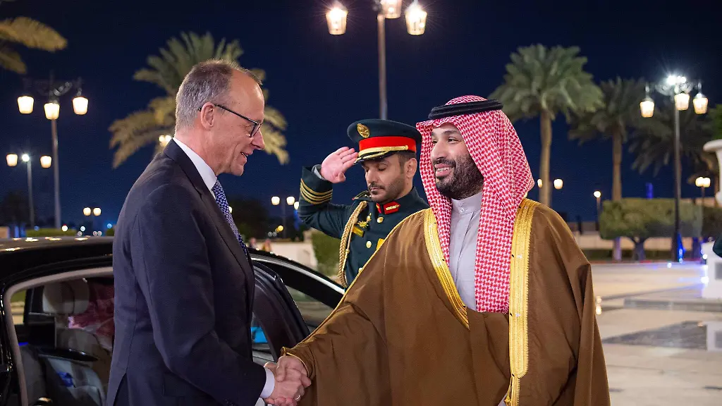 Sein pragmatischer Kurs wurde beim Besuch in Riad besonders deutlich. Am Yamama-Palast, dem offiziellen Amtssitz des Königs, wurde Merz mit militärischen Ehren von dem einst geächteten Kronprinzen empfangen. Er war 2018 vom US-Geheimdienst für den Mord an Khashoggi verantwortlich gemacht worden. Der Thronfolger selbst bestreitet, Drahtzieher der Tat gewesen zu sein, hat aber die Verantwortung für den Tod Khashoggis übernommen.