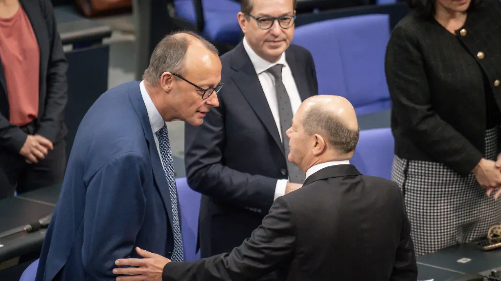 Er wolle Merz anbieten, in zwei oder gerne auch noch mehr Fragen, "die entscheidend sind für unser Land, konstruktiv zusammenzuarbeiten: bei der schnellen Stärkung unserer Wirtschaft und unserer Verteidigung", sagte der Kanzler.