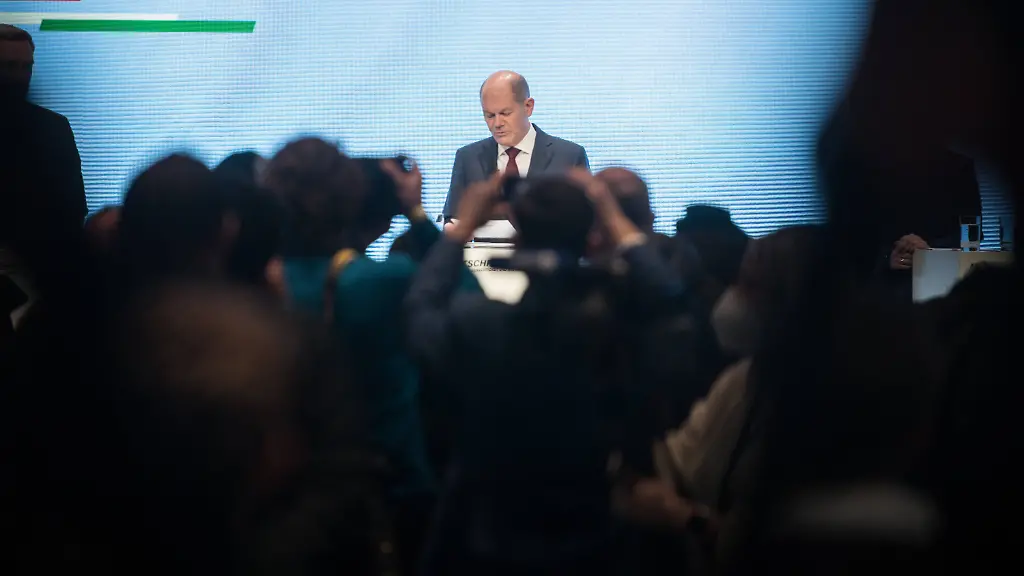 Kein guter Start der zukünftigen Regierung in ihren Kampf gegen Corona war das. Seitdem haben die Ampel-Parteien weiter verhandelt und das Virus hat weiter gewütet: Von 43.628 Neuinfektionen am Tag des Beschlusses in der vergangenen Woche stieg die Zahl der neu Infizierten am Mittwoch auf 66.884. Eine Zahl, die Olaf Scholz im Nacken sitzt, als er auf der Bühne in der umgebauten Backsteinlagerhalle zur Corona-Lage Stellung nimmt, nachdem sich die Chefinnen und Chefs der drei Parteien neben ihm aufgestellt haben. Das Wort "Koalitionsvertrag" ist da noch nicht einmal gefallen.