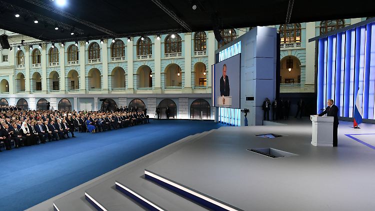 Fast eine Stunde widmet sich Putin dann dem nach seiner Ansicht wirtschaftlich resilienten und potenten Russland. Er stellt neue Sozial- wie Kulturvorhaben bis ins letzte Detail vor, redet von Hochschulreformen und Hochtechnologie. Es ist ein Teil der Rede, der langatmig und monoton wirkt. Zugleich ist es der Teil, in dem Putin sicher auftritt - bis ins Detail informiert, mit Kennzahlen zur Wirtschaftsentwicklung ausgerüstet.