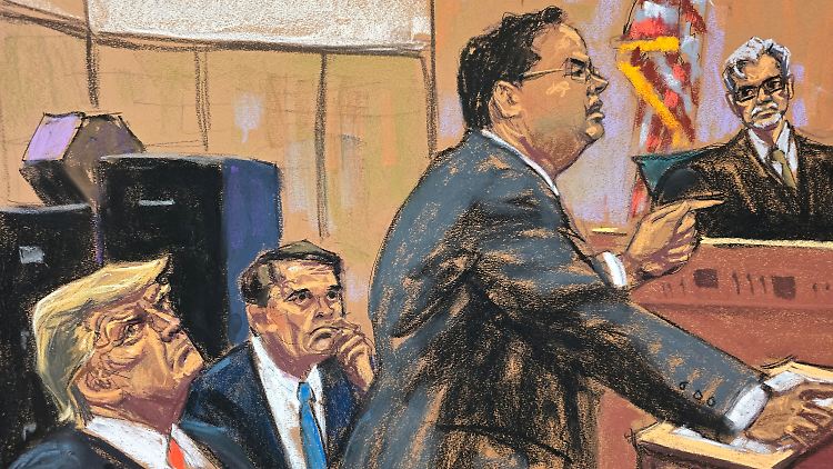 Während des Wartens vor dem Gericht und drinnen im 15. Stock ist die Stimmung merklich anders als an vorhergegangenen Verhandlungstagen. Die langen Wochen der Geschworenenauswahl, der Eröffnungsreden von Anklage und Verteidigung sowie der Zeugenbefragungen sind vorbei. Nur noch wenige Schritte fehlen bis zu einem Urteil im ersten Strafprozess gegen einen ehemaligen US-Präsidenten. Viele bekannte Gesichter aus US-Fernsehsendern sind zu sehen, unter anderem von CNN, NBC, Fox News. Staatsanwaltschaft und Verteidigung haben sich eine Woche lang auf ihre Plädoyers vorbereitet.