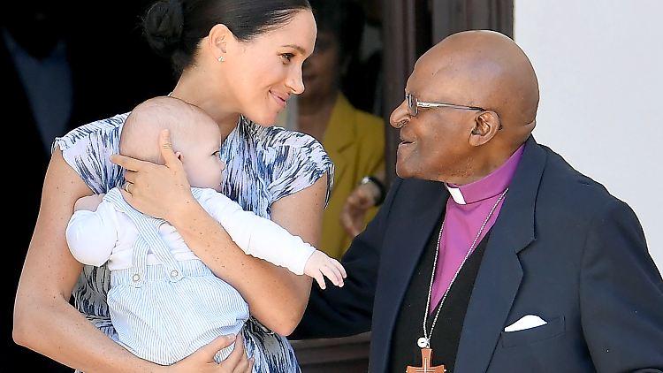 Einer der letzten öffentlichen Auftritte von Tutu: Mitte September 2019 stellte ihm Prinz Harry bei einer Afrikareise seine Frau Meghan und Sohn Archie vor.