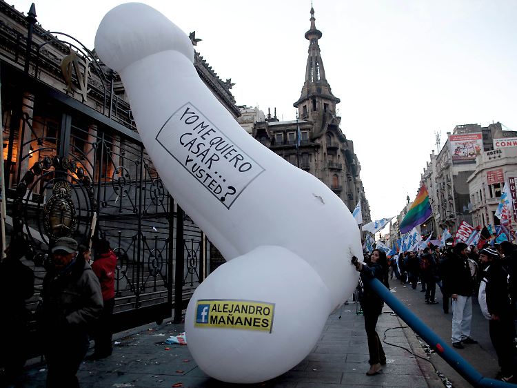 Teile der Opposition und der Medien sowie vor allem die in Argentinien besonders konservative katholische Kirche liefen Sturm gegen die Novelle. Am Dienstag hatten sich Schätzungen von Medien zufolge etwa 50.000 Menschen an einer Protestkundgebung vor dem Parlament in der Hauptstadt Buenos Aires beteiligt. Unter dem Slogan "Die Kinder haben ein Recht auf eine Mutter und einen Vater" demonstrierten sie gegen das Gesetzesprojekt, das der Erzbischof von Buenos Aires, Kardinal Jorge Mario Bergoglio, als "Schachzug des Teufels" gebrandmarkt hatte.