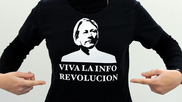 Es lebe die Informations-Revolution heißt es auf diesem T-Shirt mit dem Gesicht von Assange.