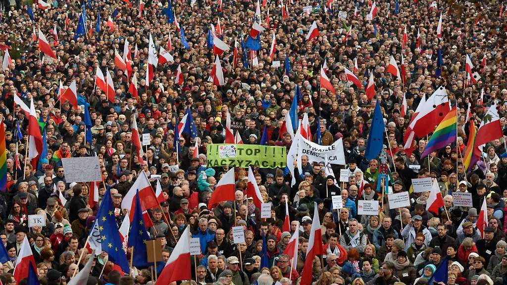In den vergangenen Wochen hatten Gesetzesänderungen sowie zahlreiche Wechsel an den Spitzen von Polizei, Behörden und Staatsunternehmen im In- und Ausland für Proteste gesorgt. Zehntausende Menschen demonstrierten am Wochenende in mehr als 20 polnischen Städten für Demokratie und gegen die neue Regierung. Viele Teilnehmer trugen Spruchbänder wie "Nein zur Diktatur" und "Hände weg vom Verfassungsgericht".