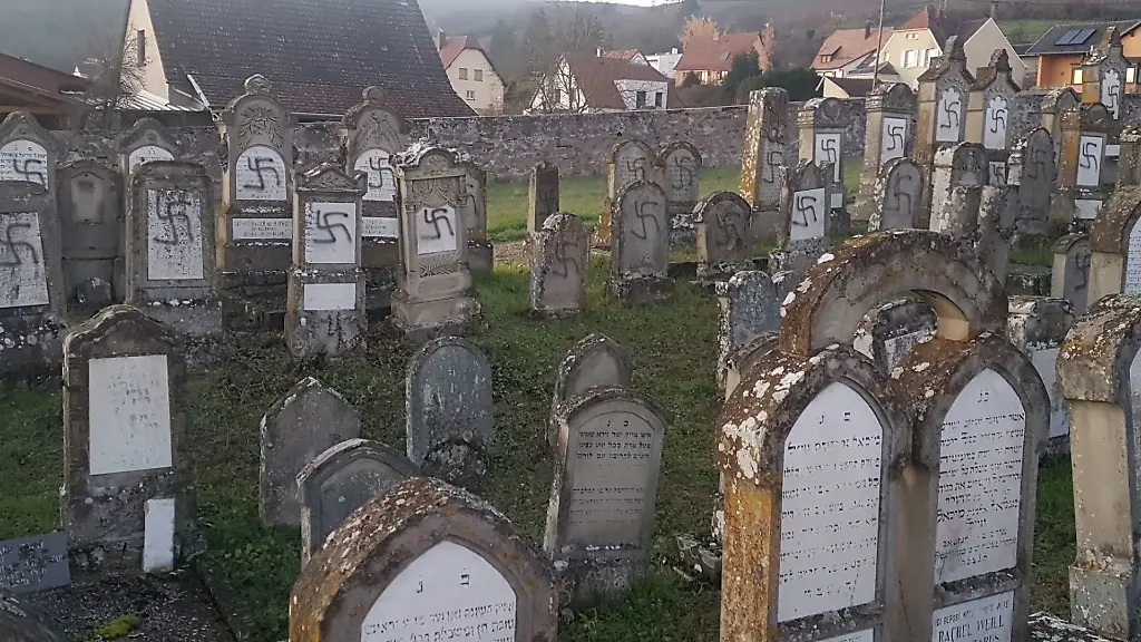 Unbekannte hatten 107 Grabstätten auf dem jüdischen Friedhof in Westhoffen, rund 25 Kilometer von Straßburg entfernt, mit antisemitischen Inschriften beschmiert, wie die Präfektur Bas-Rhin bekannt gegeben hatte. Auf Fotos waren schwarze Hakenkreuze auf den Grabsteinen zu sehen.
