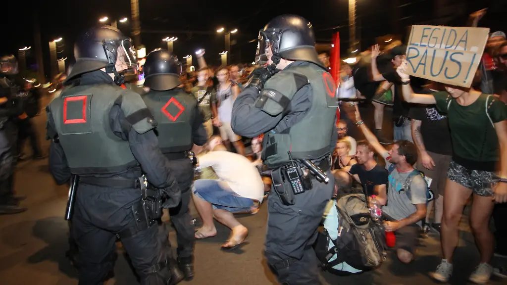 Bei der wöchentlichen Demonstration des islamkritischen Bündnisses Legida in Leipzig ist es zu Ausschreitungen und Zusammenstößen mit der Polizei gekommen. Teils vermummte und offensichtlich gewaltbereite Vertreter "einer Fußball-Klientel" hätten sich an die Spitze des Aufzugs gesetzt, dann seien Flaschen auf Polizisten und Streifenwagen geschleudert worden, teilte ein Polizeisprecher mit, der aber nicht von Hooligans sprechen wollte.