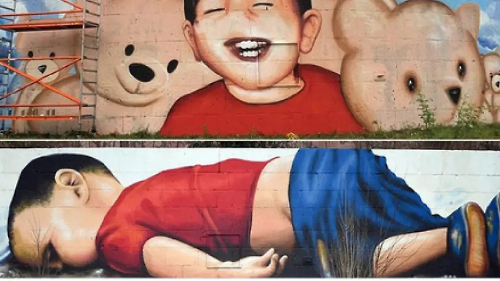 Die Künstler wollten sich dieses Mal nicht damit zufrieden geben, die Schmiererei auf ihrem Bild einfach nur zu beseitigen und das Wand-Gemälde wieder herzustellen. Die beiden Künstler haben die 120 Quadratmeter große Wand nun ganz neu gestaltet. Nun lächelt Aylan und ist von Teddybären umgeben.