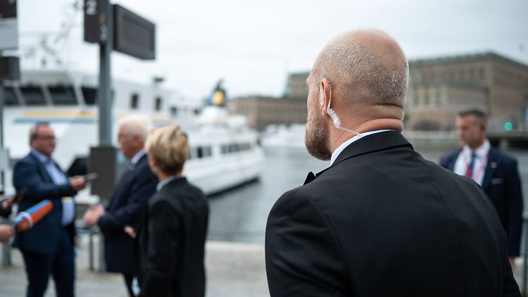 Hier bewacht ein Personenschützer des BKA vor einem Hotel in Stockholm Bundespräsident Frank-Walter Steinmeier.