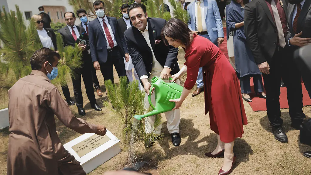 Außenministerin Annalena Baerbock ist am Vormittag in Islamabad mit ihrem pakistanischen Amtskollegen Bilawal Bhutto Zardari zusammengekommen, um über die Lage in Afghanistan nach der Machtübernahme der Taliban im vergangenen Jahr sowie die Versorgung afghanischer Flüchtlinge in Pakistan zu sprechen. Bei einer gemeinsamen Pressekonferenz mit Zardari lobte Baerbock die Rolle Pakistans bei der Aufnahme von aus Afghanistan geflüchteten Menschen. Die Menschen in Pakistan hätten ein "großes Herz" bewiesen und schulterten "eine enorme Aufgabe".
