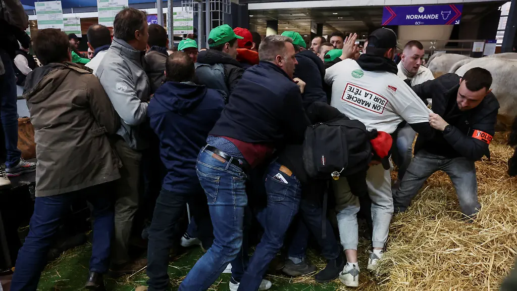 Unter ihnen befanden sich Mitglieder der Bauernverbände FNSEA, Jeunes agriculteurs und Coordination rurale. Als sie Macron zur Rede stellen wollten, kam es zu Handgreiflichkeiten mit dem Sicherheitspersonal, das versuchte, ihnen den Weg zu versperren. Zahlreiche Polizisten eilten anschließend herbei, um die Demonstranten zurückzudrängen. Die Landwirte protestierten mit Pfiffen und Buhrufen gegen Macron und forderten dessen Rücktritt. "Die Jagd auf Macron ist eröffnet", skandierten einige Demonstranten.