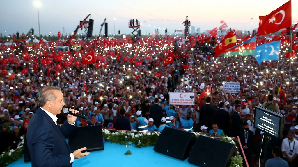 Am Sonntagabend hatte Erdogan bei einer Großkundgebung in Istanbul gegen den Putsch erneut Vorwürfe gegen Deutschland erhoben. Er kritisierte, dass er sich bei der türkischen Kundgebung in Köln am Sonntag vor einer Woche nicht per Videoleinwand zuschalten durfte. "Wo ist die Demokratie?", fragte Erdogan. Den deutschen Behörden warf er vor, bei einer früheren Veranstaltung in Köln eine Videoschalte der PKK zugelassen zu haben. "Sollen sie die Terroristen nur ernähren", sagte er. "Wie ein Bumerang wird es sie treffen."