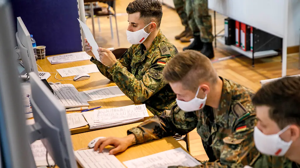 Deutschlandweit hilft die Bundeswehr derzeit mit rund 1350 Soldaten bei diversen Corona-Maßnahmen. Davon seien "rund 160 Soldatinnen und Soldaten des Sanitätsdienstes im Rahmen der Hilfeleistungen im Einsatz", sagte ein Sprecher des Verteidigungsministeriums den Zeitungen der Funke Mediengruppe. Demnach sind derzeit rund 320 Soldaten in zwölf Bundesländern unter anderem mit mobilen Teststationen im Einsatz. Um die Gesundheitsämter zu entlasten, würden darüber hinaus 426 Soldaten in 33 örtlichen Ämtern bei der Nachverfolgung von Infektionsketten helfen. Insgesamt stehe ein Kontingent von bis zu 15.000 Soldaten kurzfristig für die Hilfe bereit.