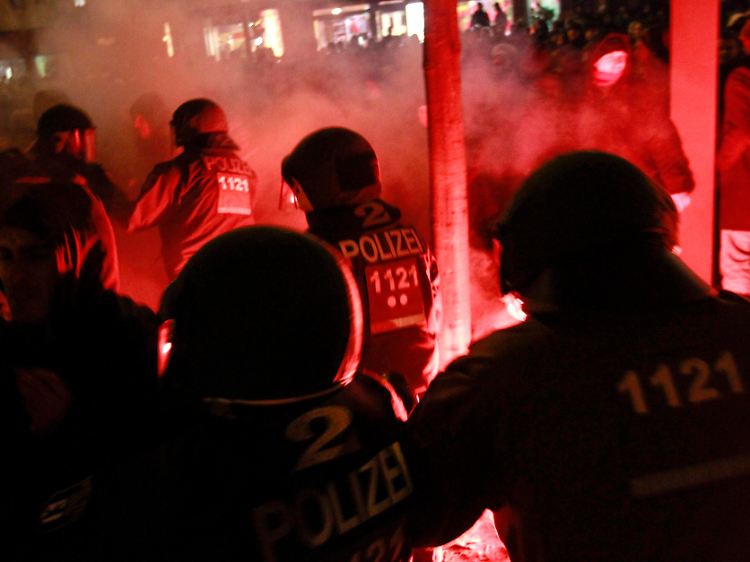 Aus Solidarität waren am Mittwochabend in Hamburg rund 400 Linke auf die Straße gegangen. Bei Randalen im Schanzenviertel seien vier Polizisten verletzt worden, sagte eine Sprecherin des Lagezentrums. Die Polizei setzte unter anderem einen Wasserwerfer ein. Auch in Frankfurt am Main zogen etwa 20 schwarz gekleidete Menschen nach Polizeiangaben durch die Stadt.