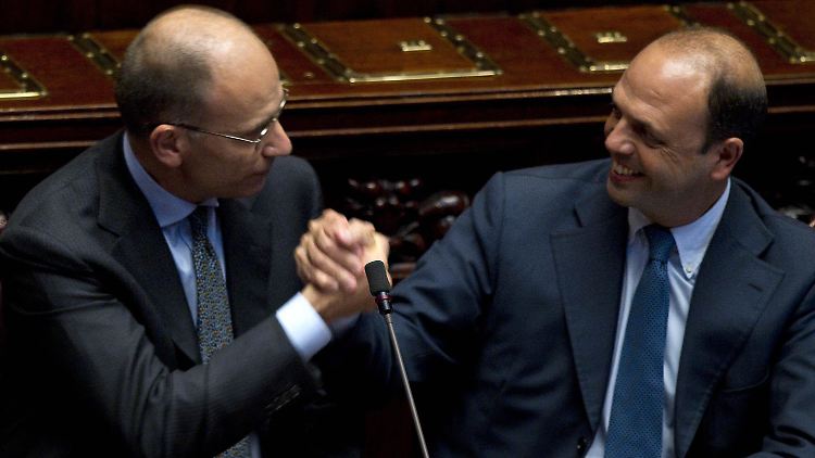 Angelino Alfano (rechts) gratuliert Ministerpräsident Letta nach der gewonnenen Vertrauensabstimmung.