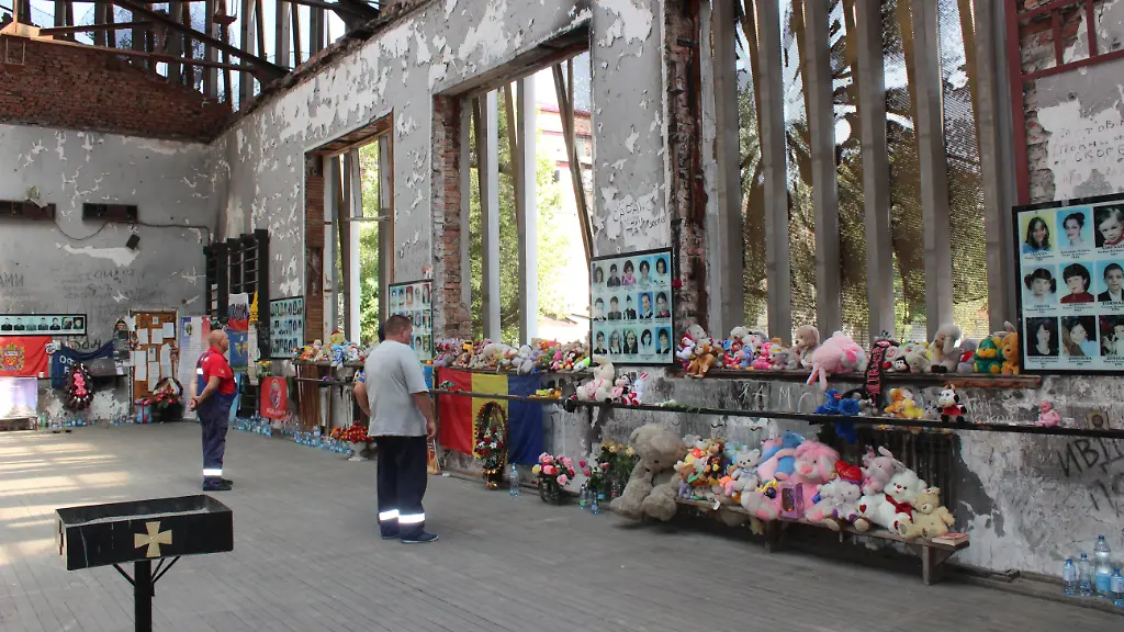 Über der zerstörten Turnhalle liegt ein riesiger goldener Metallbau. "Hier habe ich die schlimmsten Stunden meines Lebens verbracht", erzählt sie. Gurijewa fällt das Erzählen nicht schwer, dennoch kommen ihr immer wieder die Tränen. "Die Tragödie darf niemals vergessen werden", sagt sie und deutet in der Ruine auf eine Bilderwand, wo neben Stofftieren die gerahmten Fotografien zweier Kinder hängen. "Das ist meine kleine Wera, wenige Tage vor Schulbeginn. Und mein Boris. Beide tot." Nur sie und die jüngste Tochter Irina überlebten - und kämpften jahrelang mit posttraumatischen Störungen.