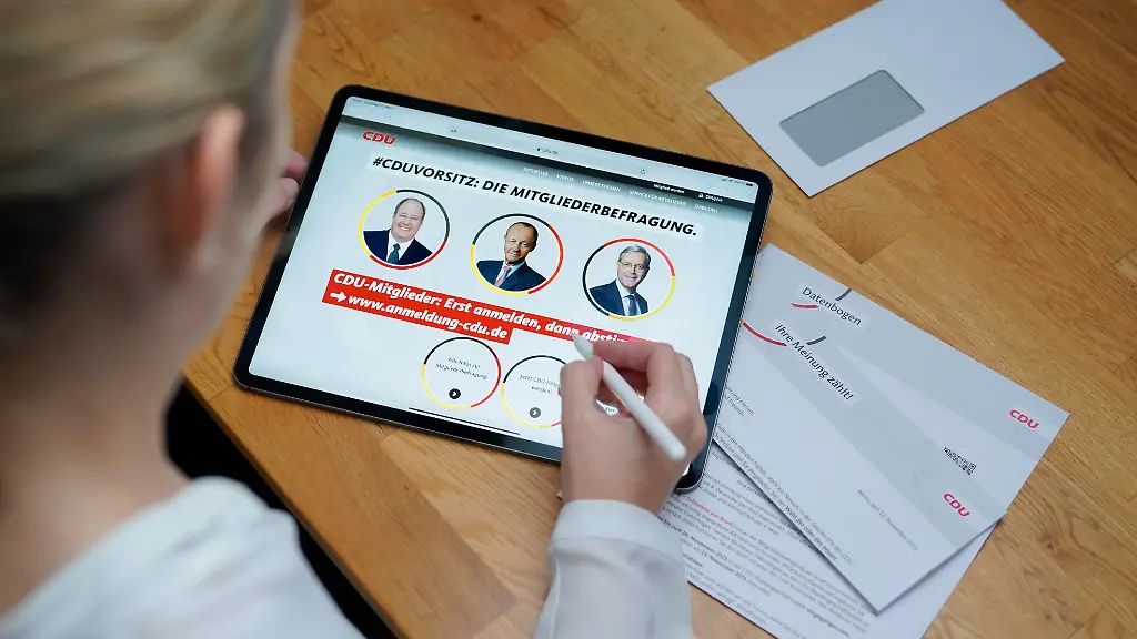 Die CDU-Vorsitzkandidaten Friedrich Merz und Helge Braun wollen einem Bericht zufolge das Vorgehen bei der Mitgliederbefragung vereinfachen, weil die Beantragung der Briefwahl-Unterlagen zu kompliziert sei. Wie die "Bild"-Zeitung berichtete, sollen alle, die sich nicht für die Online-Abstimmung registrieren, demnach automatisch Briefwahl-Unterlagen erhalten. Derzeit müssen die Briefwahl-Unterlagen durch Rücksendung des Wahlbriefes an die Parteizentrale ausdrücklich beantragt werden. Gegen eine Änderung des Verfahrens sträubt sich dem Bericht zufolge allerdings der dritte Kandidat, Außenexperte Norbert Röttgen.