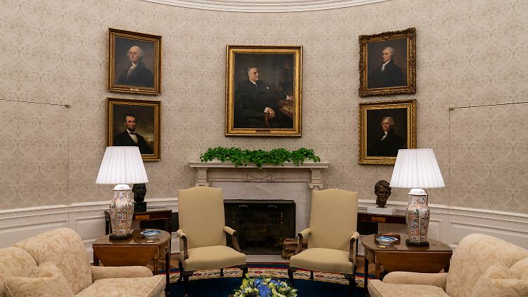 Ansonsten ließ Biden laut dem Bericht noch die Fahnen der einzelnen Teile der US-Streitkräfte entfernen, die Trump hereingeholt hatte. Stattdessen gebe es nun nur noch eine Fahne der USA und eine mit dem Siegel des Präsidenten. Der Teppich sei nun dunkelblau wie während der Clinton-Jahre, und die Möbel seien alle aus dem Lager des Weißen Hauses ausgewählt worden. Auch der Schreibtisch ist seit Jahrzehnten der Gleiche. Biden wird sich vermutlich gleich heimisch fühlen.