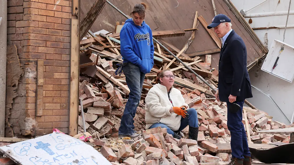 Der Präsident ließ sich vor Ort von Gouverneur Andy Beshear, Heimatschutzminister Alejandro Mayorkas und der Leiterin der US-Katastrophenschutzbehörde Fema, Deanne Criswell, über den Status der Bergungsarbeiten und das Ausmaß der Zerstörung unterrichten. Zuvor war Biden bereits über das Katastrophengebiet per Hubschrauber geflogen, um sich aus der Luft ein Bild von der Lage zu machen. Am Nachmittag (Ortszeit) wollte er noch den ebenfalls schwer betroffenen Ort Dawson Springs besuchen. Im Anschluss ist dort auch eine Rede geplant.