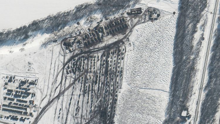 Neu aufgenommene Satellitenbilder zeigen militärische Aktivitäten in Russland in der Nähe der Grenze zur Ukraine. Die Bilder zeigten "mehrere neue Feldeinsätze von gepanzerter Ausrüstung und Truppen", erklärte der US-Satellitenhersteller Maxar Technologies. Die am Sonntag aufgenommenen Fotos scheinen Spuren von Fahrzeugen zu zeigen, die über schneebedeckte Felder fahren, die von Wäldern umgeben und von Straßen gesäumt sind.