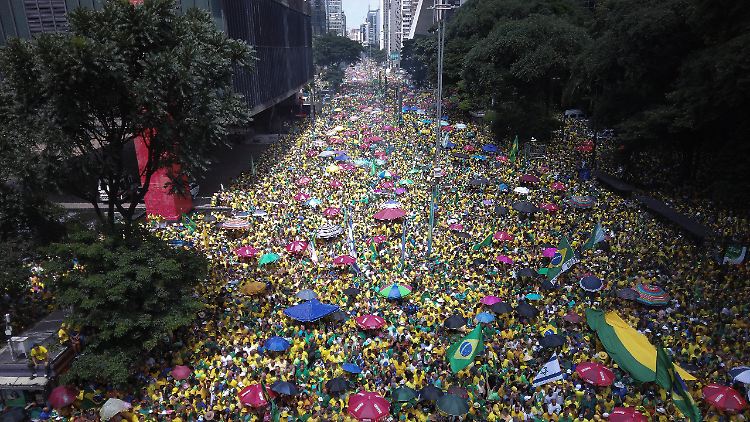 Es ging nicht um die Worte, sondern um die Bilder. Hunderttausende Menschen strömten am Sonntag in São Paulo auf die Straßen, um Ex-Präsident Jair Bolsonaro zu unterstützen - das erste Mal seit seiner verlorenen Wahl 2022. Der rechte Ex-Staatschef steckt in enormen juristischen Problemen, weshalb er zur Demonstration auf der Hauptverkehrsachse Avenida Paulista aufgerufen hatte: Alle sollten sich in Grün und Gelb kleiden, den Nationalfarben, die der rechte Präsident sich praktisch zu eigen gemacht hat. "Dieses Foto wird um die Welt gehen", versprach er der Menge bei seiner Rede, bei der er alle Schuld von sich wies.