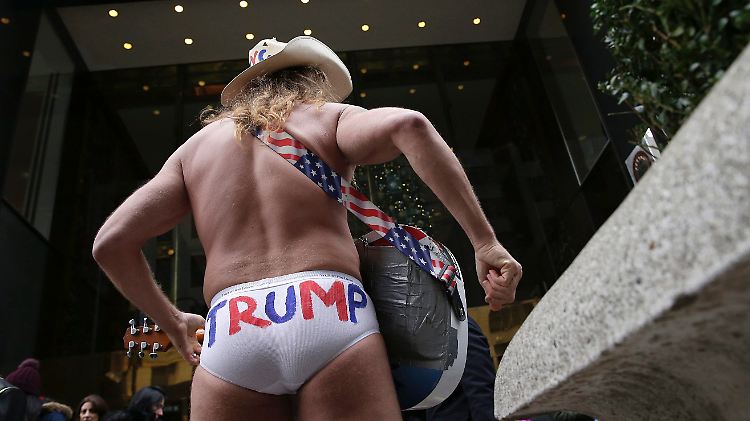 Vor dem Trump Tower in New York spielt der "Naked Cowboy", ein erklärter Fan des künftigen Präsidenten.