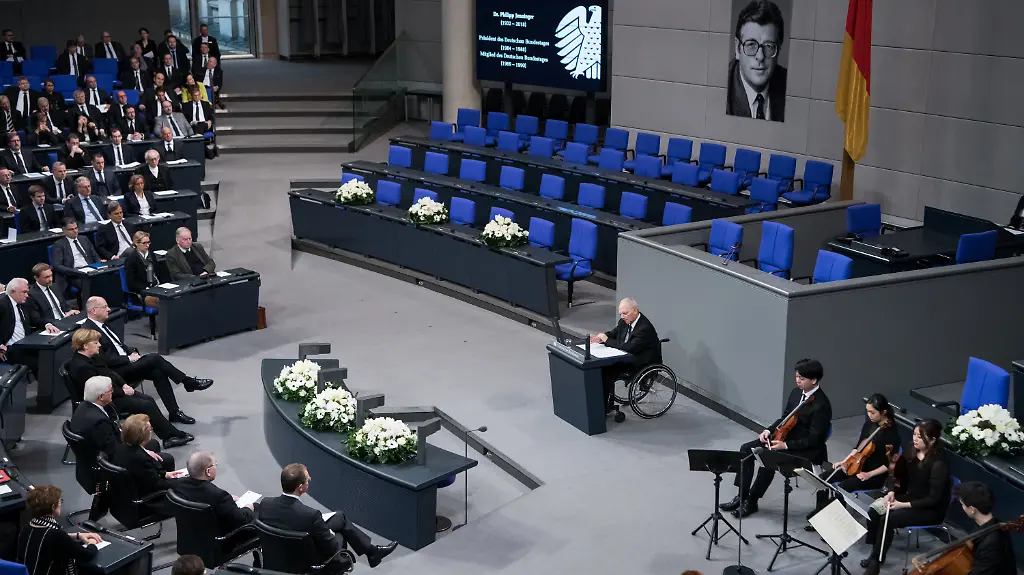 Bundestagspräsident Wolfgang Schäuble hat den früheren Parlamentspräsidenten Philipp Jenninger als Wegbereiter von Reformen und strikten Gegner autoritärer Herrschaft gewürdigt. "Er betrachtete es als Ehre, für den demokratischen Rechtsstaat zu arbeiten", sagte Schäuble bei einem Staatsakt im Bundestag. Jenninger war zwei Wochen zuvor im Alter von 85 Jahren gestorben.