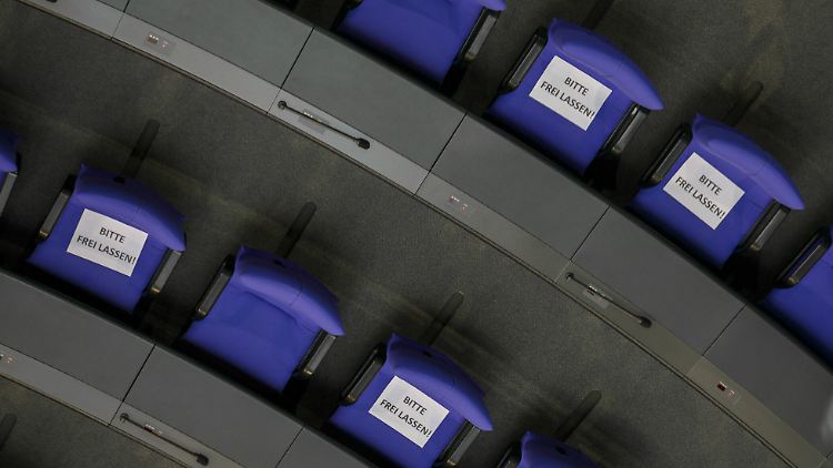 Auch unter der Reichstagskuppel gilt Infektionsschutz. Daher wurden heute bereits auf vielen Sitzplätzen Zettel verteilt, auf denen steht: "Bitte freilassen". Zwischen den einzelnen Abgeordneten sollen - soweit möglich - zwei Plätze frei bleiben. Da zurzeit keine Gäste in den Bundestag dürfen, bleiben die Besuchertribünen frei. Abgeordnete dürfen die Debatte - ausnahmsweise - auch von dort verfolgen.