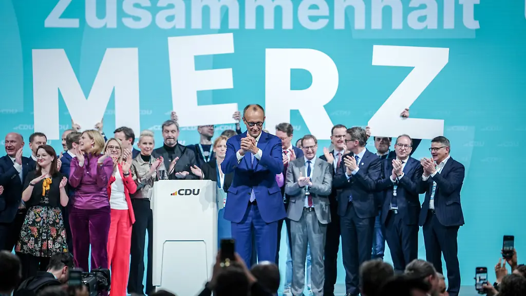 Der Parteitag der CDU bringt dem Kanzlerkandidaten Friedrich Merz 20 Tage vor der Bundestagswahl das erhoffte Signal: Die Delegierten stehen geschlossen hinter ihrem Parteichef und beschwören den "Rückenwind", den dieser im Endspurt des Wahlkampfes habe. Daran waren nach einer turbulenten Woche Zweifel aufgekommen. Im Bundestag hatte die Unionsfraktion erstmals gemeinsam mit der AfD gestimmt. Am Mittwoch beschlossen die beiden Fraktionen gemeinsam mit der FDP einen Antrag für eine strengere Migrationspolitik, am Freitag scheiterte ein Gesetzentwurf an Abweichlern in den eigenen Reihen und denen der FDP.