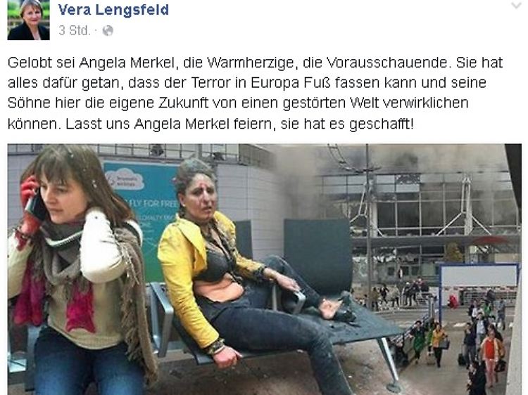 Die Nachricht über die Terroranschläge in Brüssel war noch keine drei Stunden alt, da hatte Vera Lengsfeld die Schuldigen schon ausgemacht. Besser gesagt: die Schuldige. "Gelobt sei Angela Merkel, die Warmherzige, die Vorausschauende. Sie hat alles dafür getan, dass der Terror in Europa Fuß fassen kann und seine Söhne hier die eigene Zukunft von einen [sic!] gestörten Welt verwirklichen können", schreibt die CDU-Politikerin bei Facebook und schloss ihren Beitrag mit den Worten: "Lasst uns Angela Merkel feiern, sie hat es geschafft!"